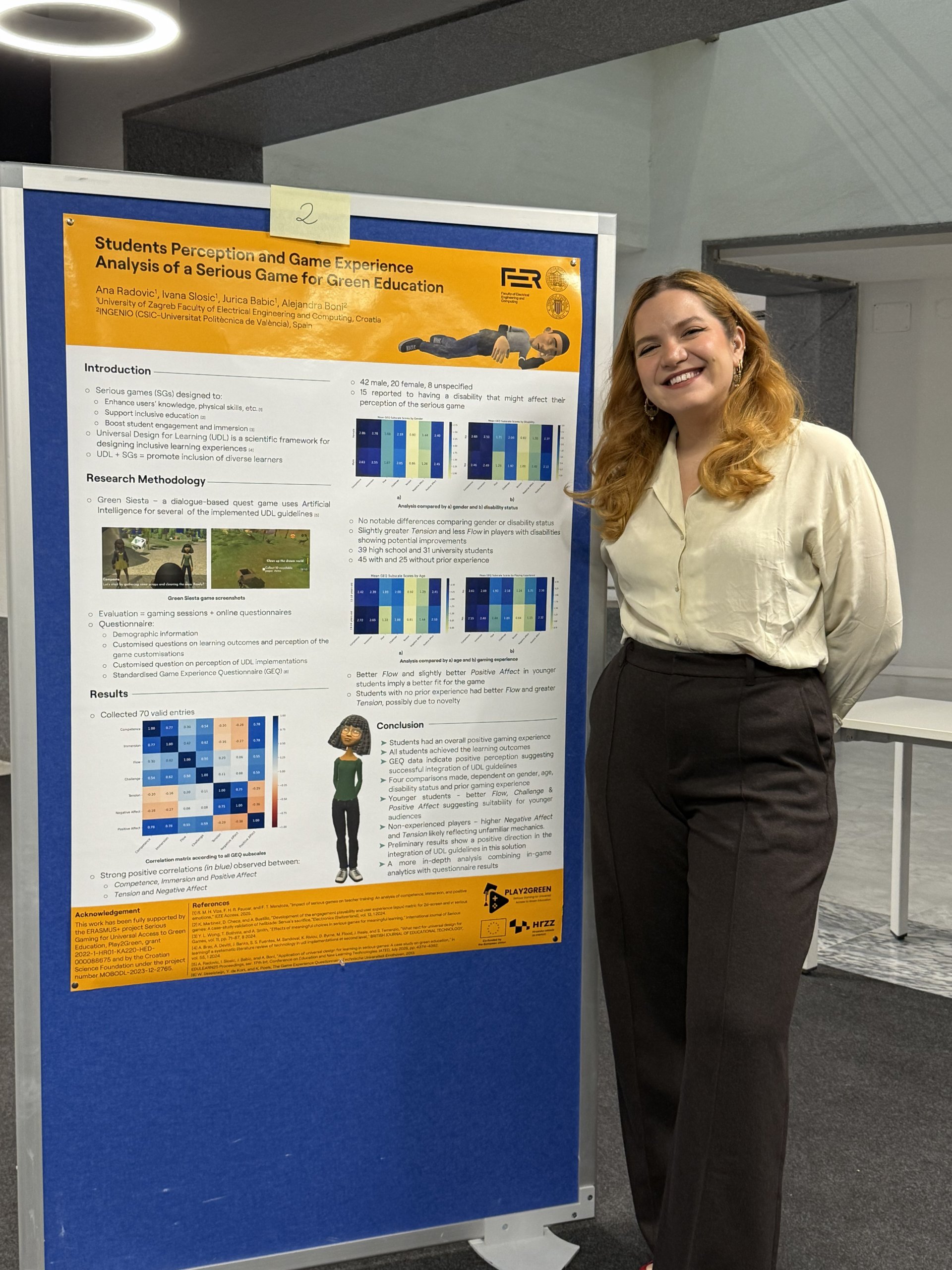Ana Radović presented a short paper titled: “Students Perception and Game Experience Analysis of a Serious Game for Green Education” (authors: A. Radovic, I. Slosic, J. Babic and A. Boni) at the International Conference on Quality of Multimedia Experience (QoMEX 2025) as part of the Play2Green UNIZG-FER team.